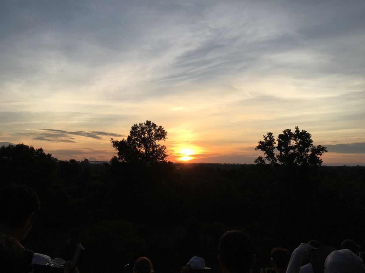 早起きは得意ではないのでお迎えの際に、ホテルに起こしてもらうように対応していたのでそれが助かりました。朝日を見る観光客はアンコールワットの池の周りに人だかりが出来て、まるで野外フェスのような雰囲気が出ていました。