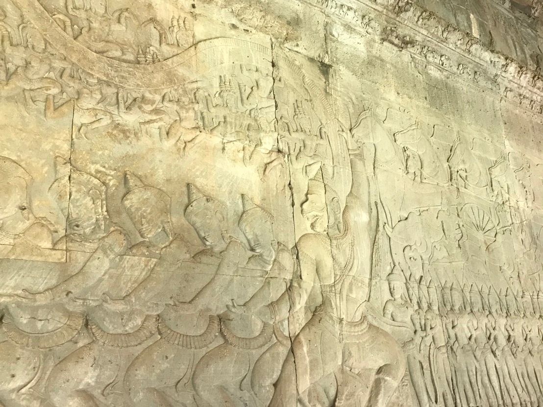 ガイドさんは現地のことに詳しい方で、午前中のタプロム遺跡、午後のアンコールワットともに分かりやすい日本語で楽しめました。主人は、アンコールワットの乳海攪拌図をどうしても見たいと常々言っていたので、しっかり時間をとってみさせて頂き、満足していたようです。