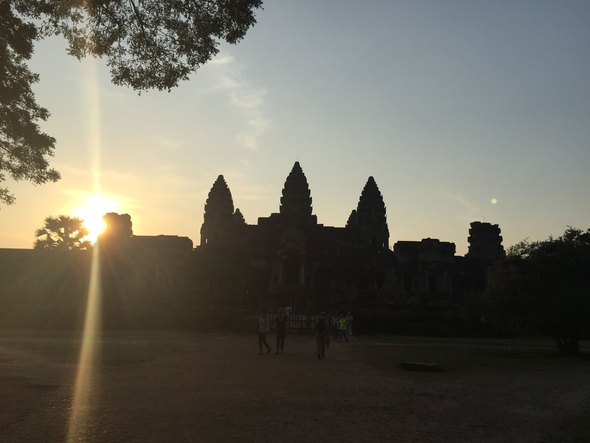朝日のアンコールワット鑑賞は最高でした。暗闇からだんだんと浮かび上がってくるシルエットは美しく、朝日が現れた瞬間は感動ものです。ただその瞬間をカメラに収めようとする人ばかりなので、有名な鑑賞スポットからだとどうしても人混みやスマホの画面が移りこんでしまうのできれいな写真を撮るのは難しいかもしれません。