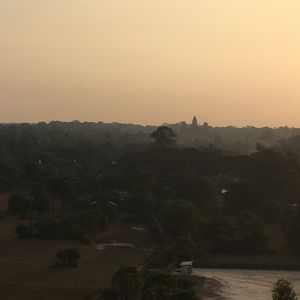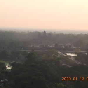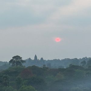 その時点でも、アンコールワットは太陽と合わせて目視で確認でき、靄がかっていてとても神秘的でした。