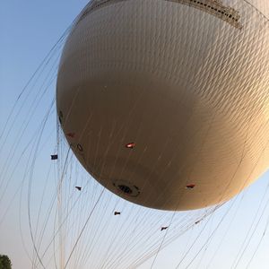 熱気球ではなく、ヘリウムガスを使用し、ワイヤーで地上とつながっていますので