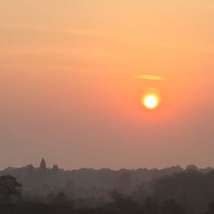 遠くに見える霧がかったアンコールワットがとても幻想的で、感動。
