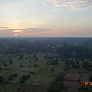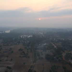 朝日は見たので少し日が上がっての8時くらいに乗りました。朝もやがかかって写真の様な感じです。気球で朝日を見てとか書いてありますが、自分は午後から、夕方にかけてが太陽のがアンコールワットに反射してきれいではないかと思います。朝もやがかかっていても広大な大地は堪能できましたヨ