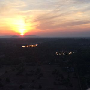 朝日が登るタイミングでぶじにバルーン上げてもらい、高い所からアンコールワットを眺められます。