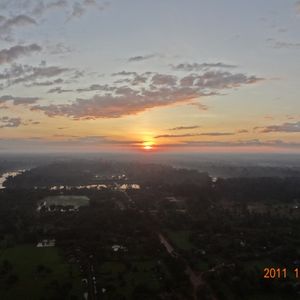 朝日をバルーンから見ました。かなり絶景で非常に綺麗に朝日がアンコールワットから登っていくのが見えました。朝は少し肌寒く長袖を着ていくことがオススメです。また別の人に聞いたのですが日中にバルーンに乗ると熱く、朝より感動が少ないということだったので時間は早いですが、どうせ乗るなら朝に乗った方がオススメです。ガイドの人は英語しか話せませんでしたが、写真を撮ってくれたりして非常によかったです。
