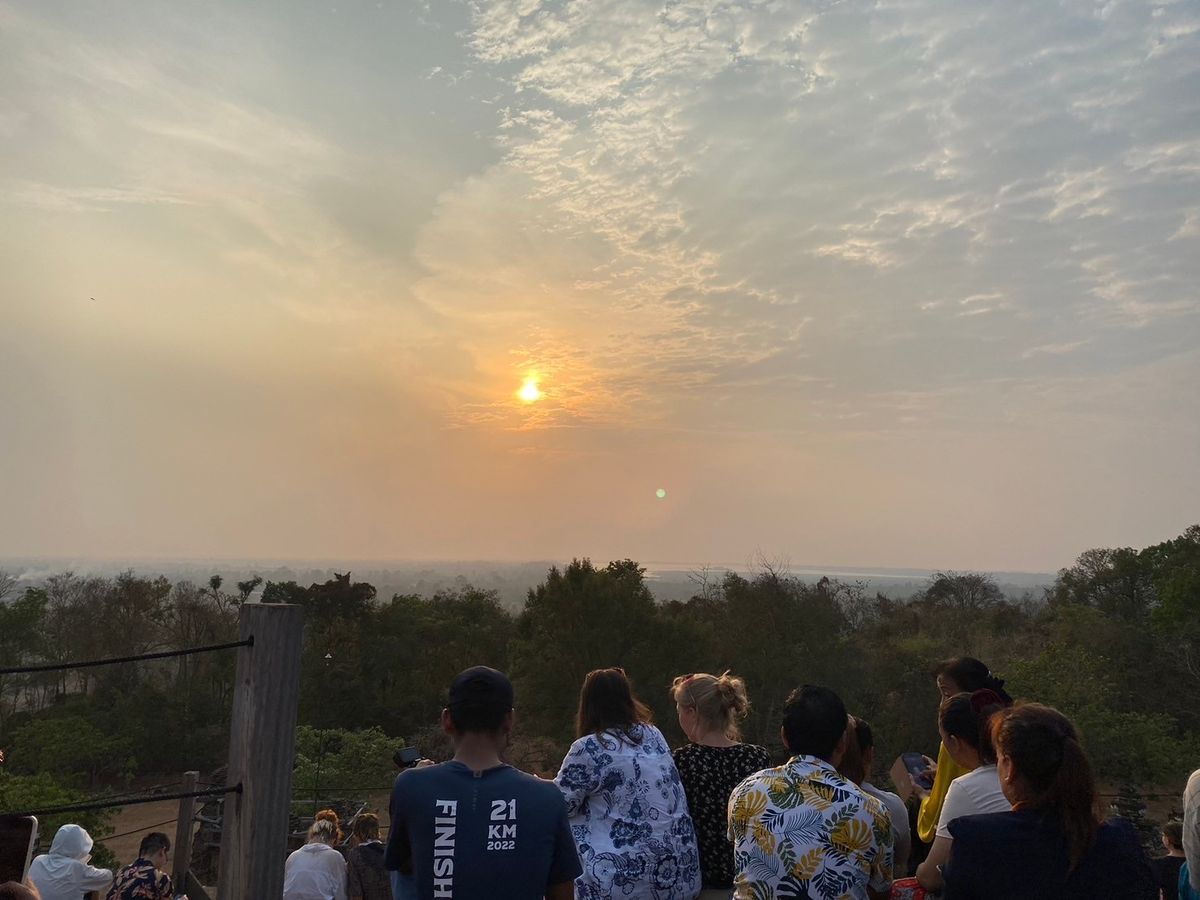 夕方には、プノン・バケン寺院に移動、頂上から見れるアンコールワットはひと際神秘的な姿をしていました。真っ赤な夕日も見れて満足です。