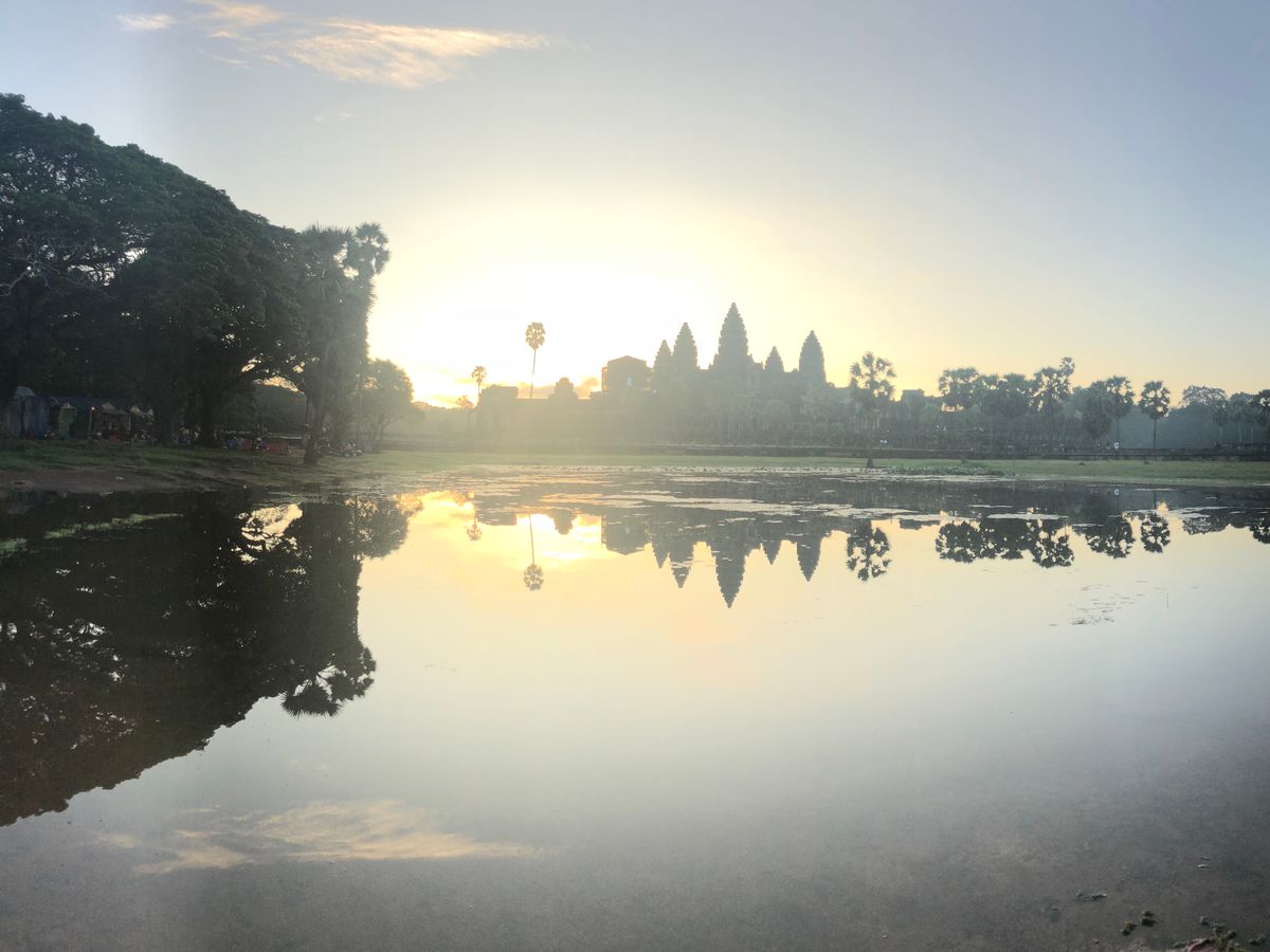 天気が曇りのため朝日は見ることはできませんでした。しかし、アンコールワット自体なかなか見れるものではなく、迫力があり感慨深い体験となりましたが、ガイドさんの距離感が近く一人旅ということもあったのか連絡をしつこく聞いてきたり、身体に触れようとしたりで不快でした。