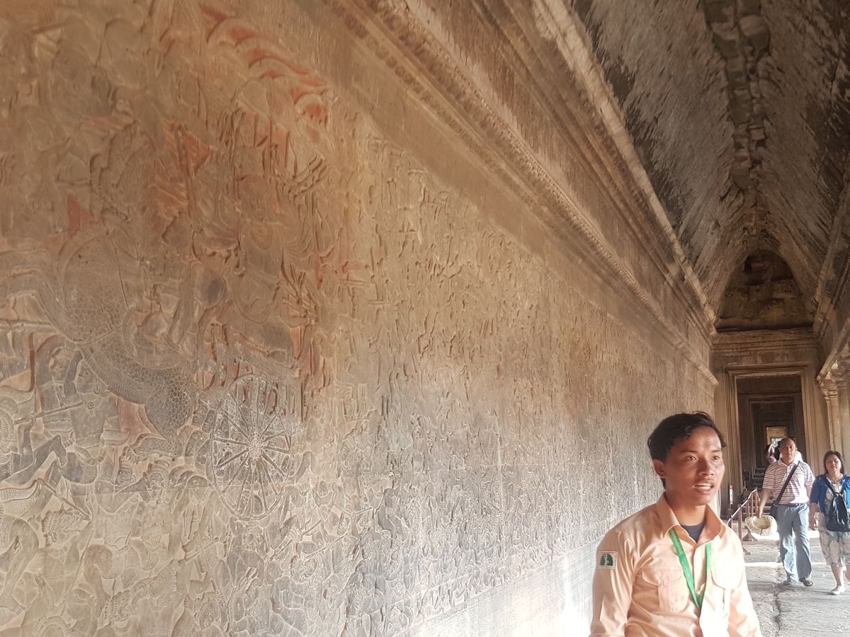 かなり蒸し暑かったけど、レリーフもよく見れて、楽しかったです。第三回廊まで登って、堪能出来ました。日本語が上手なガイドさんで、写真も沢山撮ってくれて嬉しかったです。アンコールワットがすごく気に入ったので、また来たいと思いました。