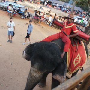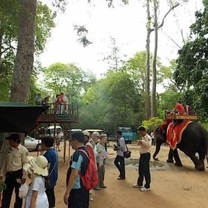 前日に同じガイドさんで、アンコールワット一日観光をして、翌日は半日観光を入れていました。私は同じところを二回、もしくは他の遺跡も見たかったのですが、同行の友人からももう行かなくて良いと言われ、ガイドさんにも前日の時に、既に一日観光をしたのだから翌日の半日観光は必要ないんじゃないかな?と何で二日も同じ場所の観光を入れたの?と言われ、朝の集合時間も一時間遅くされてしまいました。私も体調が悪かったのでそれで良いかと思いましたが、今日はほとんど観光をしない予定に切り替えたのでコストパフォーマンスは悪いです。昨日見た象乗りをしようと、バイヨンの象乗りに行きました。一人15ドルで15分です。ぐるっと回るだけですが中々楽しかったです。確かに、前日に観光しているのでトゥクトゥクで自力で来られたなぁと思いました。象乗りの後、ショッピングセンターに行ってもらって友人は買い物をしました。私は、お腹の調子が悪すぎたので、ガイドさんに薬局へ連れて行ってもらい、薬を購入しました。本当に助かりました。