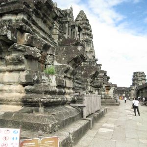 アンコールワットは、本当に広大です。隅から隅まで丁寧に観たら、一日でも足りません。ですが、ガイドさんがついてくれれば、本当にポイントを効率的にまわれます。とても愛想も笑顔も良いガイドさんに当たって、ラッキーでした。夕陽を見るために多くの人が並んでいる中、私達がちゃんといるかどうか探してくれて、見つけた時の笑顔がとてもさわやかでよかったです。こういうツアーはガイドさんの当たり外れもあるんでしょうね。私達は本当に幸運でした。