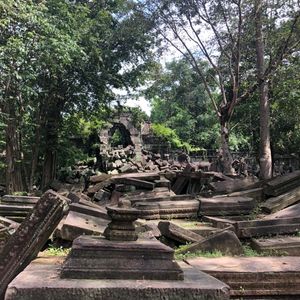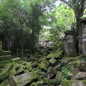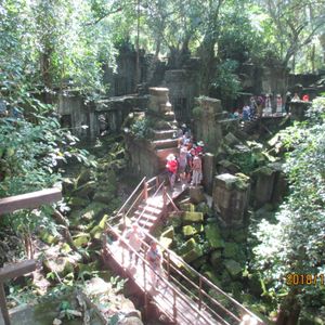 ホテルにお迎えに来てもらいベンメリアへ出発。1時間以上かかりますが、車内ではガイドさんがカンボジアの文化や国内事情などについて話してくれたので長さはそれ程感じませんでした。チケット売り場にトイレもあるので心配いりません。お待ちかねのベンメリアへ着くと、森の中に苔むした遺跡が現れ圧倒されます。観光しやすく道は作られていますが、なるべくそのまま保存されており、崩れた石の上に木の根が絡みついて長い時の流れを感じさせられました。息子もここが一番良かったと言っておりました。おすすめです。