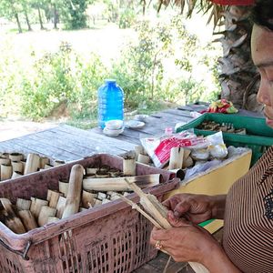 帰りの道に筒にもち米をココナッツで炊いたものを買いました。美味しかったです!ガイドさんはユニークな方で楽しかったです。