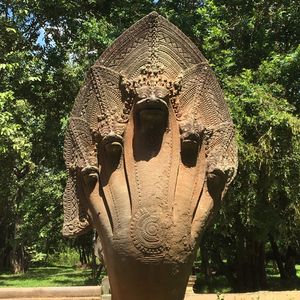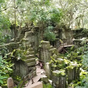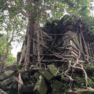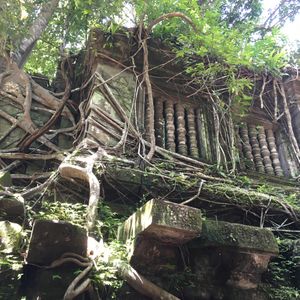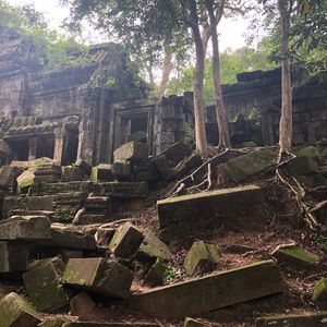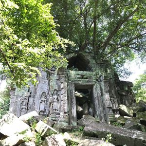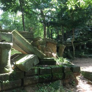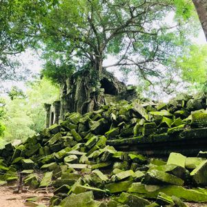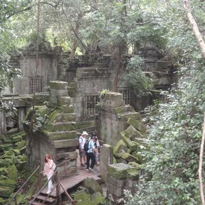 シェムリアップ中心地から車で1時間ほどの場所にあります。森の中にある遺跡という感じです。周囲は木々に囲まれ遺跡は苔で覆われており、全体的に緑が美しかったです。アンコールワットとは雰囲気が異なっており、ちがう世界に来た感覚になりました。見学後は、近くにある民家を見ながら家の造りや庶民の生活ついてガイドさんがいろいろ説明してくれました。