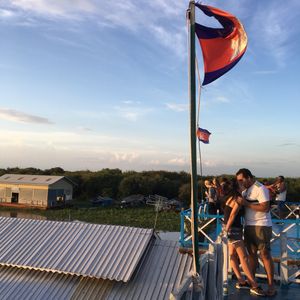 その後、トンレサップ湖に移動! ボートも貸切でヴァンニーさんと写真撮ったり、お話ししたりですね。夕日はレストランの上で見るのですが、レストランに着いたのが4時前。太陽はまだまだ上にいます。だから、2人でずっとビールを呑んでいました。ほとんど僕が呑んでいましたが、笑 可愛い女の子がお母さんと船で来て、お金をくださいと、クメール語?かなにかでいっているので、1ドルだけあげたり、しながら、時間を待ちました!