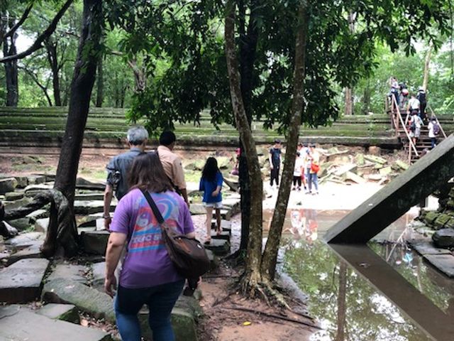 雨の降る中での観光、大変でしたね。ベンメリア遺跡は遺跡内にスロープと階段設置されているので足元は比較的安全ですが、