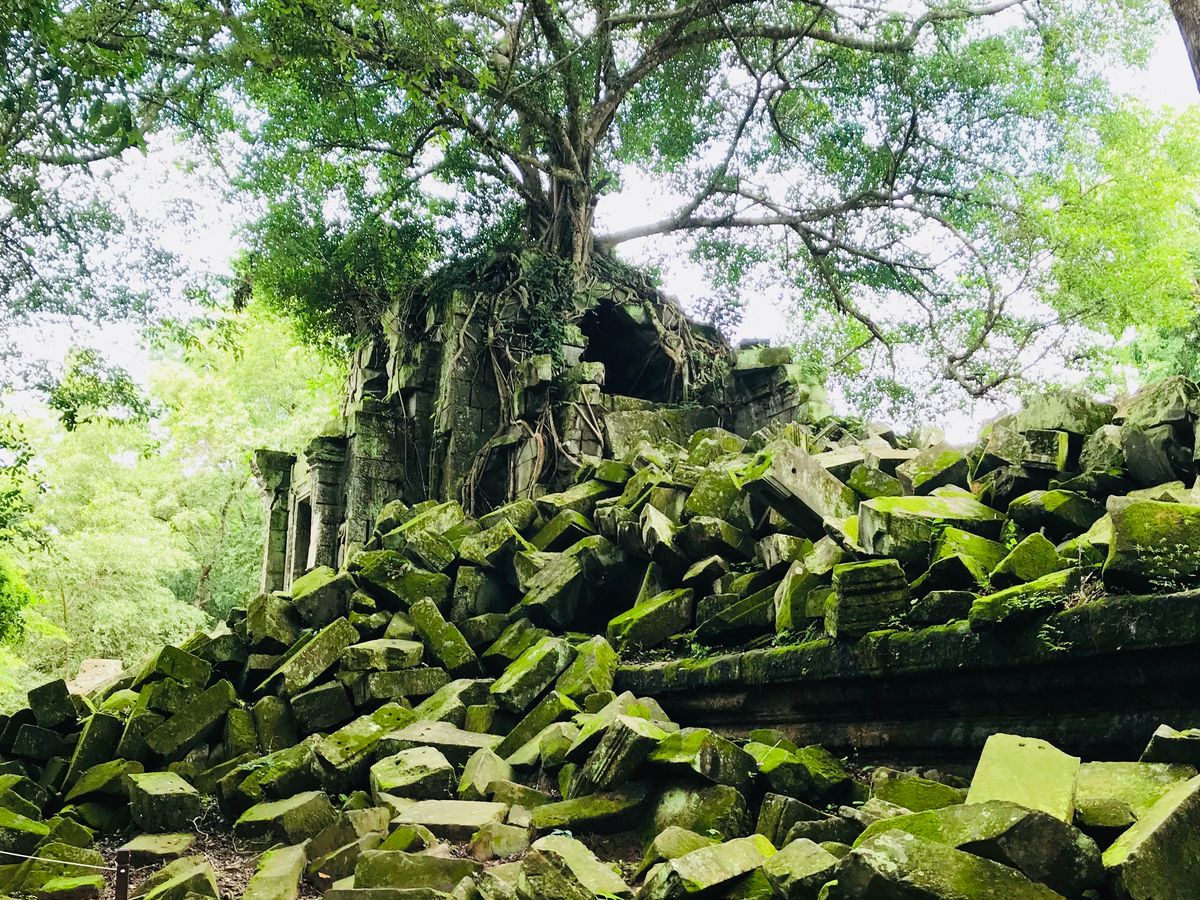 シェムリアップから少し離れているので、行こうかどうしようか直前まで迷っていましたが、行って大正解!雨季(8月)は緑が美しくて、本当にラピュタの世界でした。