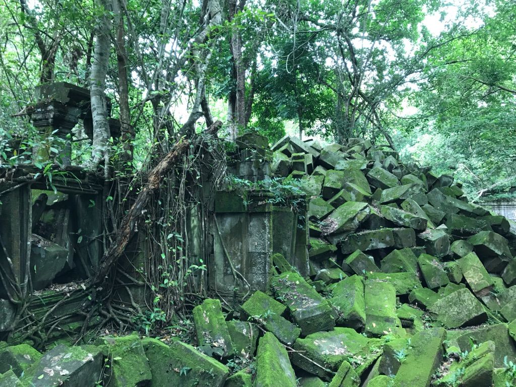 ベンメリア遺跡はアンコールワット周辺遺跡と異なり、遺跡が崩れた状態で保存され、遺跡自体に苔が生えていて青々しているのが魅力です。