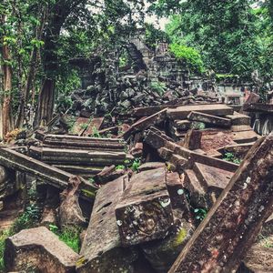 大きな木々に囲まれて崩れ落ちた遺跡はとても美しくて