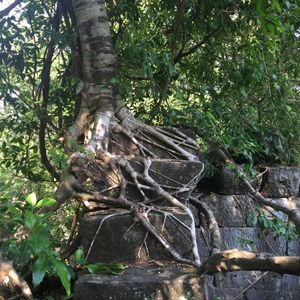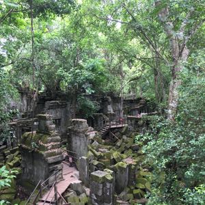 朝なのでまだそこまで暑くなかったのもありますが、木に埋もれた遺跡なので日差しも遮られて比較的過ごしやすく、鳥の鳴き声がして、とてもリラックスしながら遺跡を見て回れました。木の足場が組んであって、その上を歩いてまわるのですが、足場が不安定な場所や石の上を歩く場所もあったので歩きやすい靴で行くことをおすすめします。