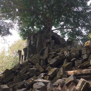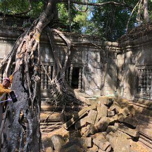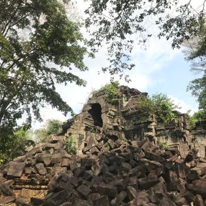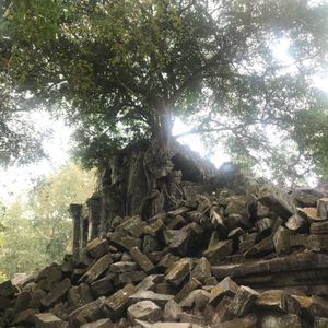 アンコールワットが人の手が入りすぎているので、個人的にはベンメリアのほうが静謐で好みです。忙しい観光のなか隙間時間で行くことが出来ました。遺跡は破壊されたものが多いですが、ものともせず絡みつく樹木の生命力に圧倒されました。