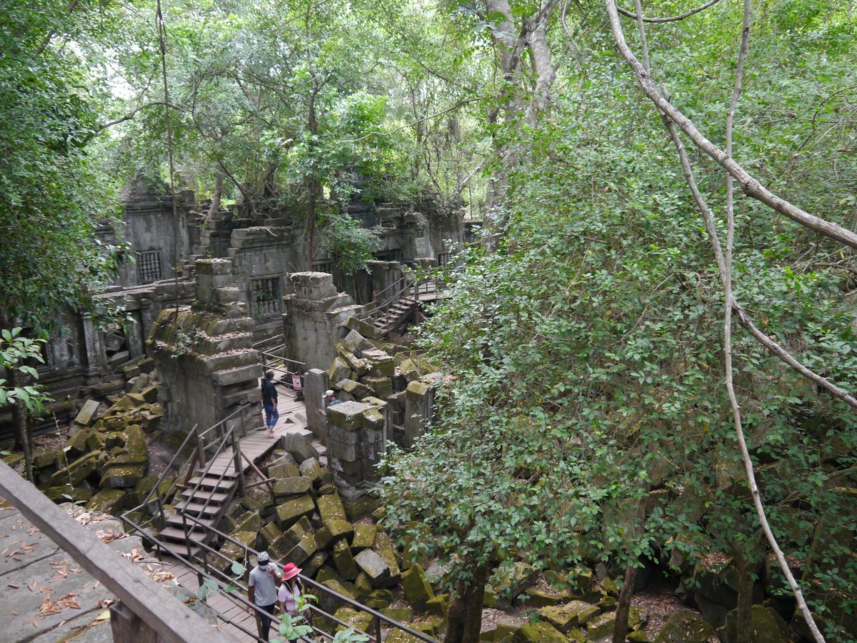 遺跡は想像通りの退廃した雰囲気でとっても楽しめました。ただし、やはり壊れかけなので自由に散策はできず、遊歩道を歩きます。冒険を味わいたいと思ってくると少しがっかりしてしまうかもしれません。また、乾季だったので密林の緑の濃さが味わえなかったのは少し残念でした。それでもとても素敵な雰囲気でした。