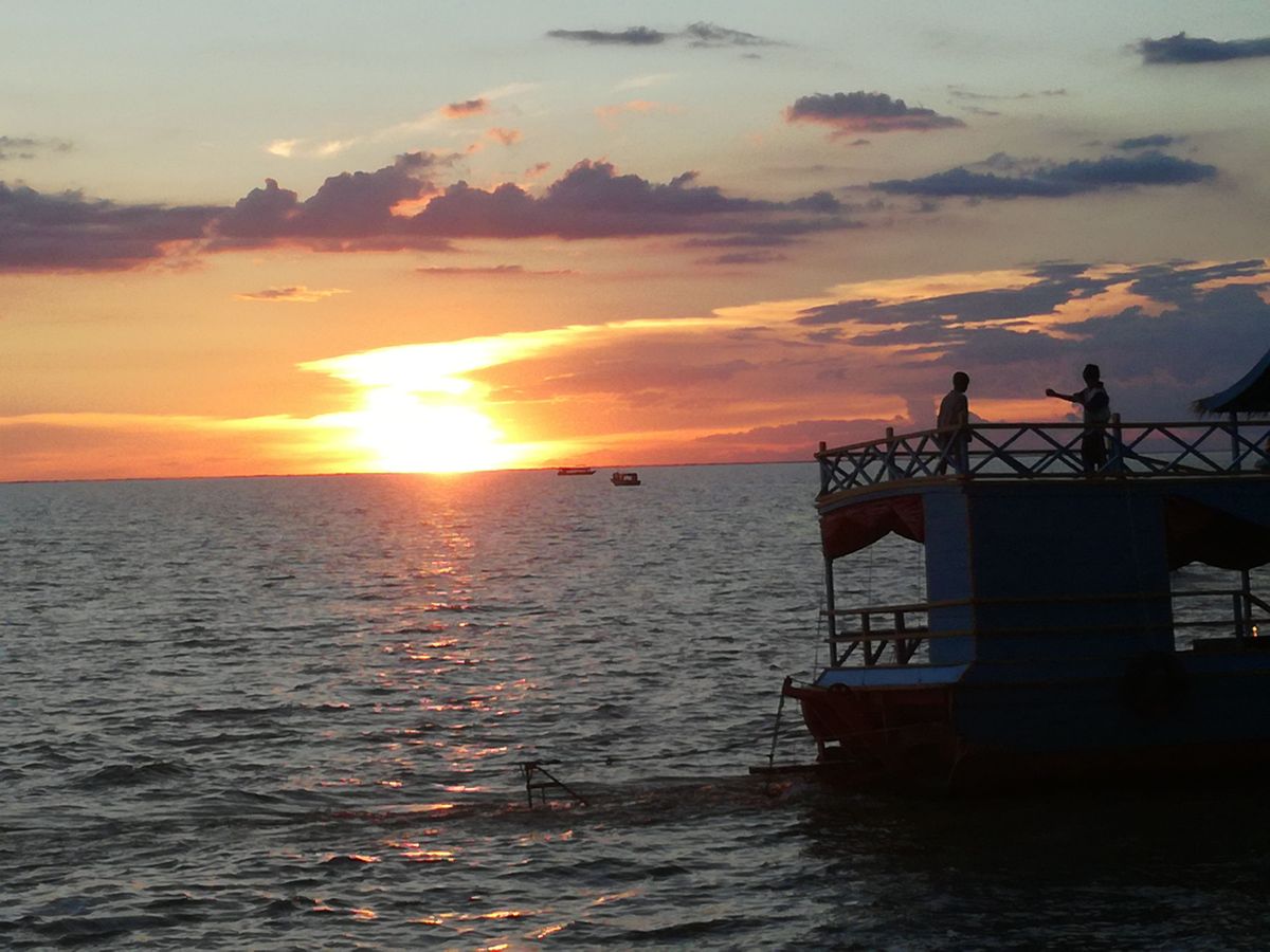 トンレサップ湖は乾季なので水は少ないそうですが、それでもかなり広大で、水上生活の人々やワニなどここでしか見られない光景に出会えました。綺麗な夕焼けも見れて満足です。