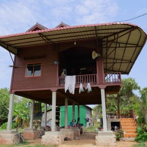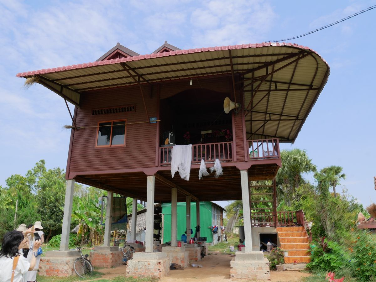その後、高床式のカンボジア伝統の民家に案内していただき、