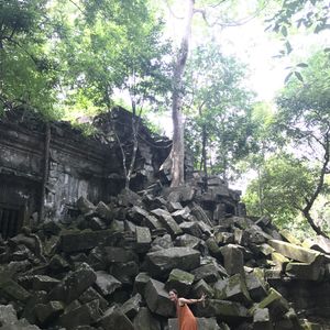 ガイドさんがいろいろとポイントを教えてくれて、日本では不可能な崩れた遺跡に乗っての写真撮影も。以前は見学できた場所も、くずれてきて立ち入り禁止になってきているらしく、今のベンメリアはもう見れないかもしれないと思うと、来てよかった。