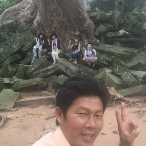 弟と2人で参加しました。あとは1人旅の方が2人で合計4人。市街地からは他の遺跡よりも遠く、移動中はアスファルトではないところを通るので車で行くツアーにしていて本当に良かったと思いました。ガイドのポンさんはとても丁寧な方で一生懸命に日本語で話してくれているのがわかりました。写真のポイントにも1つ1つ立ち止まってくれて、中国人がわんさかいるところには時間を置いて回ってくれました。NHKで放送されてから日本人観光客が増えたと言っていました。世界遺産になれば修復されてしまうのでベンメリアの良さが半減してしまうと思いますが、自然の中の発見された当時のままのベンメリア遺跡を見ることができて本当に良かったです。修復されていないこともあって周りの木々もそのままなのでアンコールワットで日陰のない見学よりも木陰で涼みながら観光できたのが一番よかったです。笑