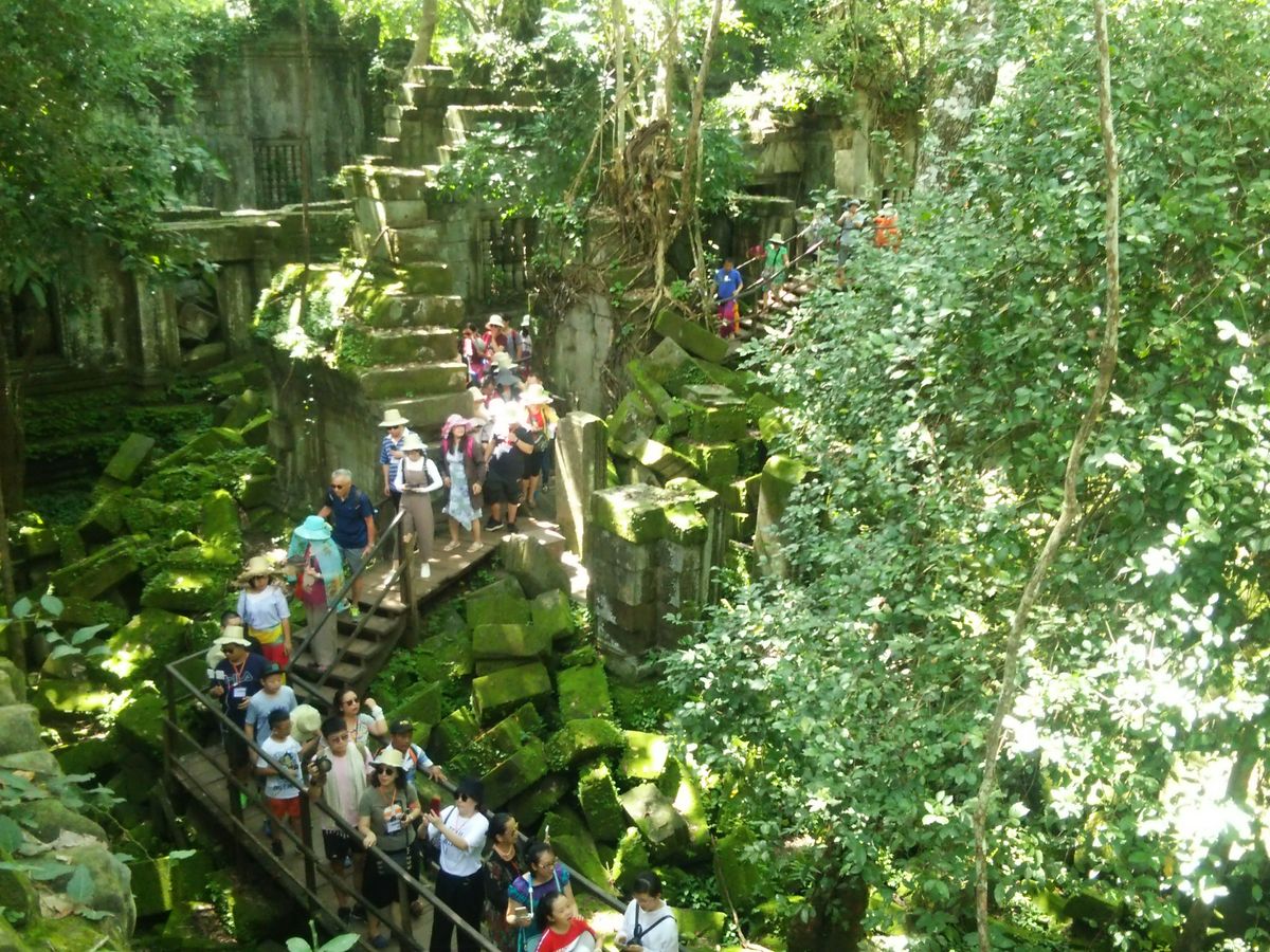 午前中のツアーに参加しました。移動中の車の中でもベンメリア遺跡やその他カンボジアの歴史についてわかりやすく説明をしてくれました。ベンメリア遺跡ではたくさんの写真スポットで写真も撮ってくださいました。中国からの団体客がとても多く、また狭い道を歩くのでツアーメンバーもばらけてしまい遺跡の説明は大変だったと思います。ですので、事前に車中で説明していただいていてよかったです。もう少しゆっくり遺跡を見たかったなとは思いました。森と崩れかけの遺跡が一体化しているようなベンメリア。神秘的でした。緑の香りがして、空気も綺麗な気がします。アンコール遺跡群から少し距離はありますが、行ってよかったです。