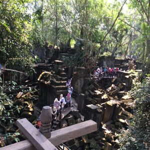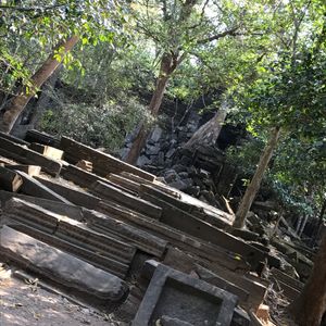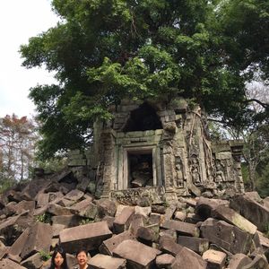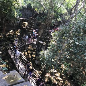 ベンメリアは、壊れかけている遺跡です。天災で壊れたとのこと、木の根っこが壊れかけている石を支えており、木の根っこのハンモックがあちらこちらにあります。遺跡見学中に結婚式の写真を撮っている場面に遭遇しました。日本では見られない遺跡でした。