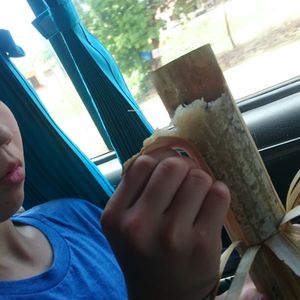 もう少しゆっくり観光したかったのですが足早に30分程で終わりました。軍手持っていったのですが使う暇もなく少し物足りなさはありましたが遺跡は神秘的でした。帰りの道に路上で売っていた竹筒に入ったもち米とココナッツミルクで蒸したものを食べたいと言うと寄ってくださりそれがとても美味しかったです。何という名前か忘れてしまいました(^_^;)