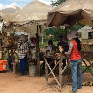 ここに来る道中で屋台があったので、何かなと思いガイドさんに聞いたところ、竹筒にもち米のご飯(おこわのような)が詰めてある軽食とのこと。帰りに寄ってもいいですかとお願いしたところ快諾していただけました。