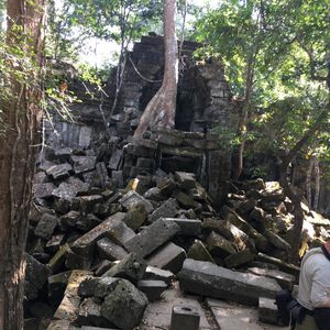 まず、ラピュタの世界観を味わえるということでベンメリア遺跡に興味を持ちました。当初はベンメリア遺跡にトゥクトゥクを使い、自力で行こうかと考えていましたが、トゥクトゥクだとあまりに時間が掛かるということでツアーの参加を決めました。当日、朝8時ロビー集合だったのですが、それより前に迎えに来てくれました。そこから1時間ほどワゴン車で移動し、途中のチケット売り場で先にトイレがないことをガイドの方が教えてくれて助かりました。その後、ベンメリア遺跡に到着しました。ベンメリア遺跡は自然の木々の成長によって崩壊してしまっている箇所も多くあるようで、自然の偉大さを感ぜずにはいられませんでした。崩壊している遺跡を巡りながら、ガイドさんは「ここは西回廊です」などと日本語で説明してくれました。また遺跡をしっかり把握している人でなければ分からないルートやポイントがあり、ツアーに参加しなければ行けなかったところも観光できたので本当に感謝しています。