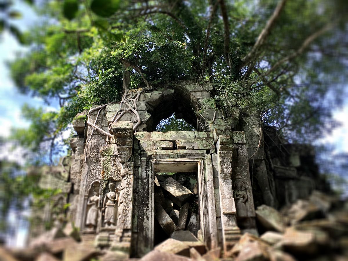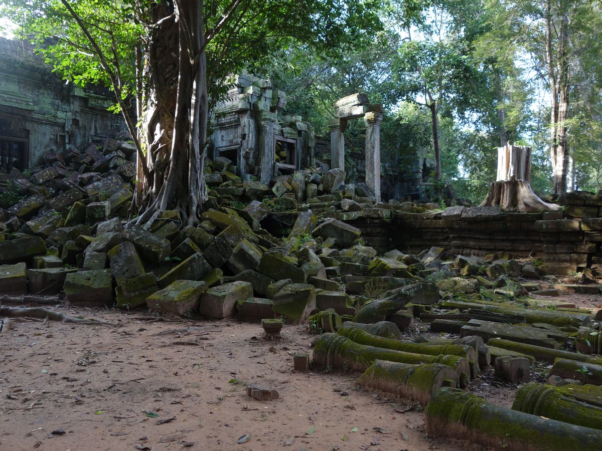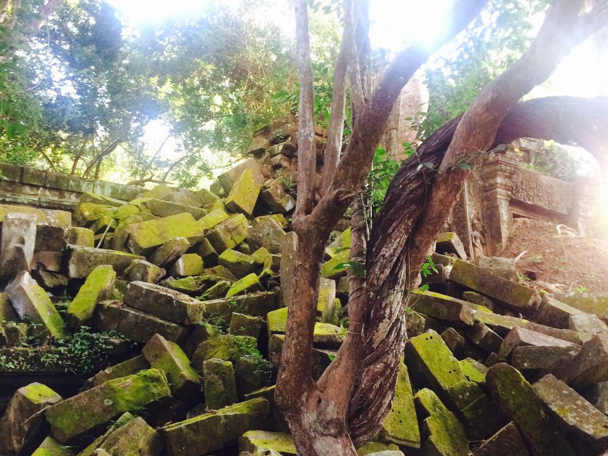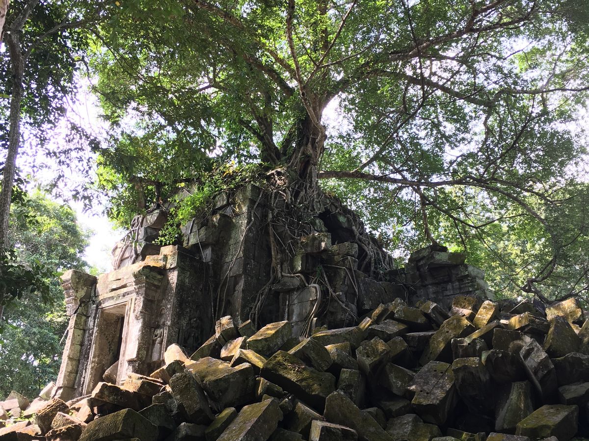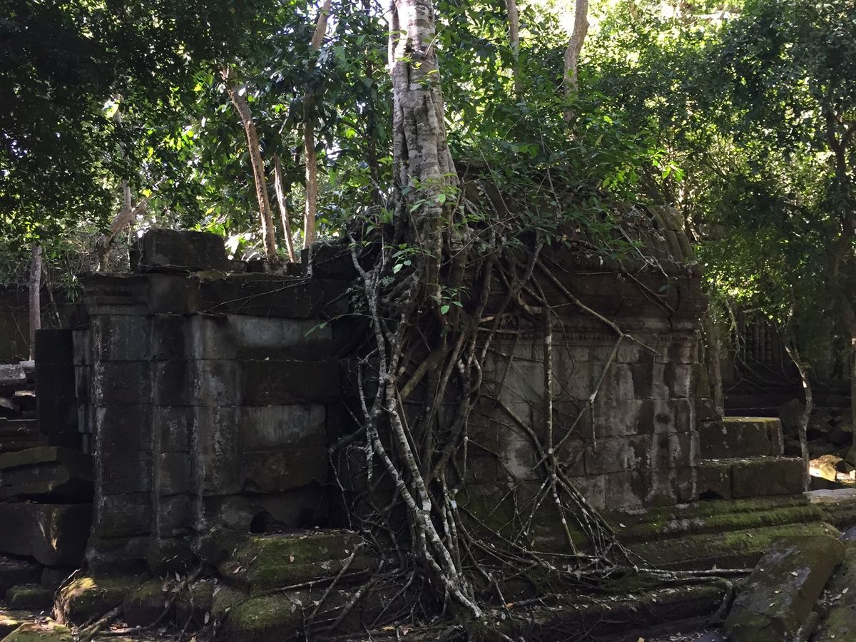 遺跡はというと、アンコールワットとは趣が異なり、神秘的な雰囲気に圧倒されました。苔の美しさや、崩れた建物、様々な場所から生え伸びる木の根など、写真を撮りたくなる風景ばかりでした。