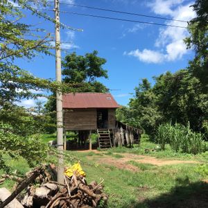 遺跡のお写真も大変綺麗ですが、高床式民家のお写真も青空と緑が