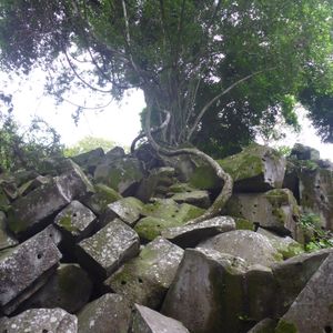 車から降りると長い参道を渡り、崩れた遺跡が見えてきました。