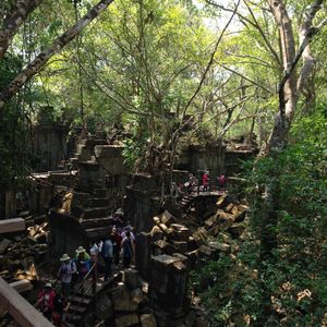 ベンメリア遺跡の中は、ある程度自由に歩き回れます。私たちは遺跡が崩れているところにのぼって写真撮影をしました。このような機会はなかなかないので、のぼれる人はドンドンのぼるべきです! 1 時間ほどで回れ、木々のおかげで比較的涼しいところなので、体力的にも余裕があると思います。