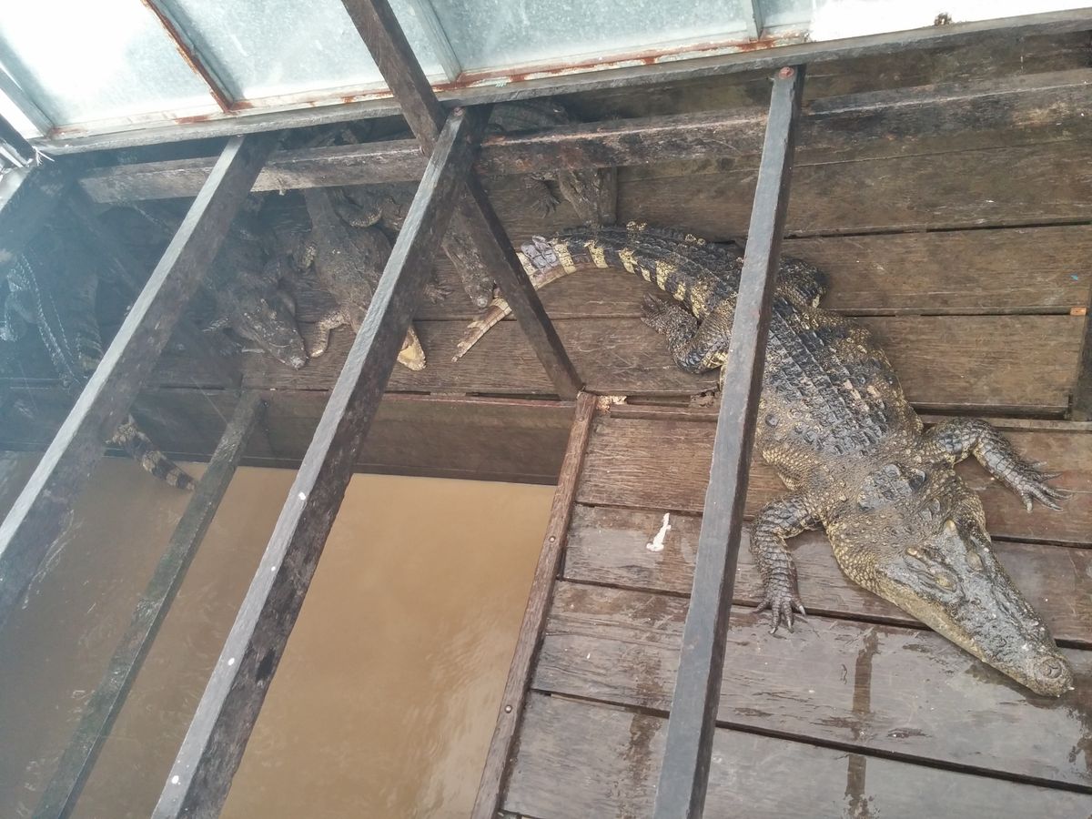 トンレサップ湖は小型ボートで30分位で着いたがベトナム人の多くが水の上で家を浮かべそこで暮らしている。学校あり、教会ありで大きな湖の中の町を作っている。