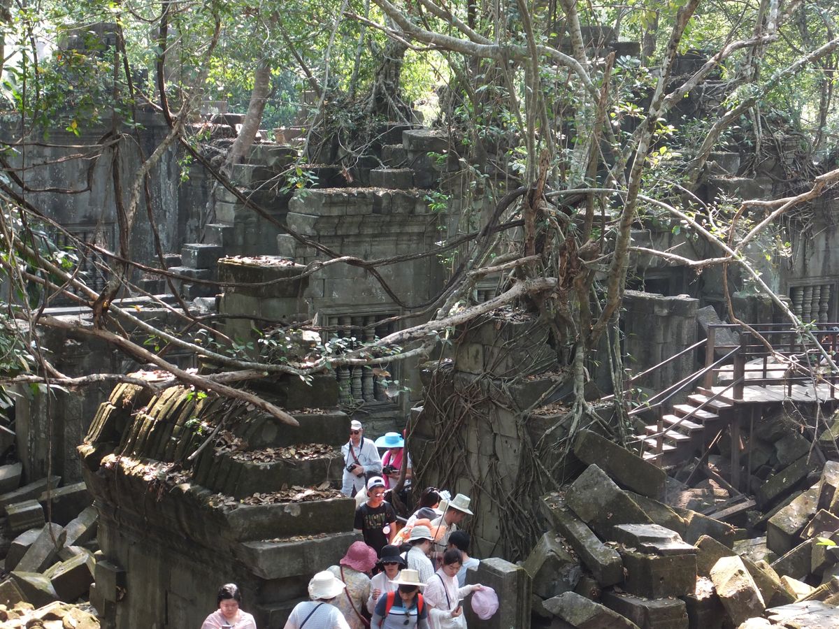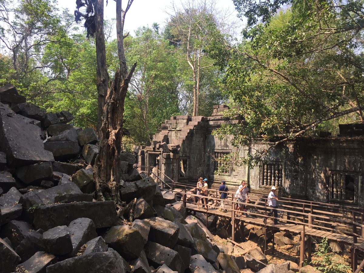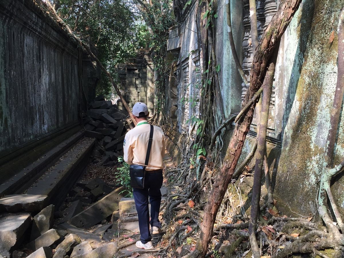 ベンメリアではガイドさんが混雑していた正規の入り口を避けて、ガレキを越えていくマニアックなコース(?)を案内してくれました。ハードな道程ながらも観光客の少ないルートを進み、手付かずの遺跡の雰囲気を堪能できました。