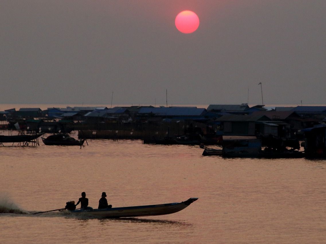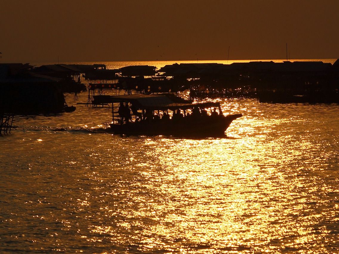トンレサップ湖での夕日のお写真、大変素晴らしいですね。