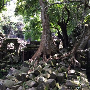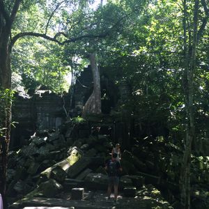 アンコールワットなどの他の遺跡とは雰囲気かま違い、自然の力と歴史を両方味わうことができました。天気も良く、遺跡と木の間に差し込む木漏れ日がとても綺麗でした。