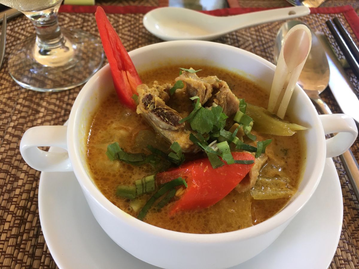 1時間ほどの観光を終えて、トイレ休憩をして、チャンレイツリーにランチに行きました。ベッカムも来店した高級店だそうです。飲み物は自己負担です。決められた料理が出てきました。どれも上品な味で美味しく頂きました。マンゴーカレーが美味しかったです。同じテーブルの人で取り分けしていただきました。とても素敵な1人旅の男性の方と同席で久しぶりに日本人の方と会話が出来て楽しかったです。