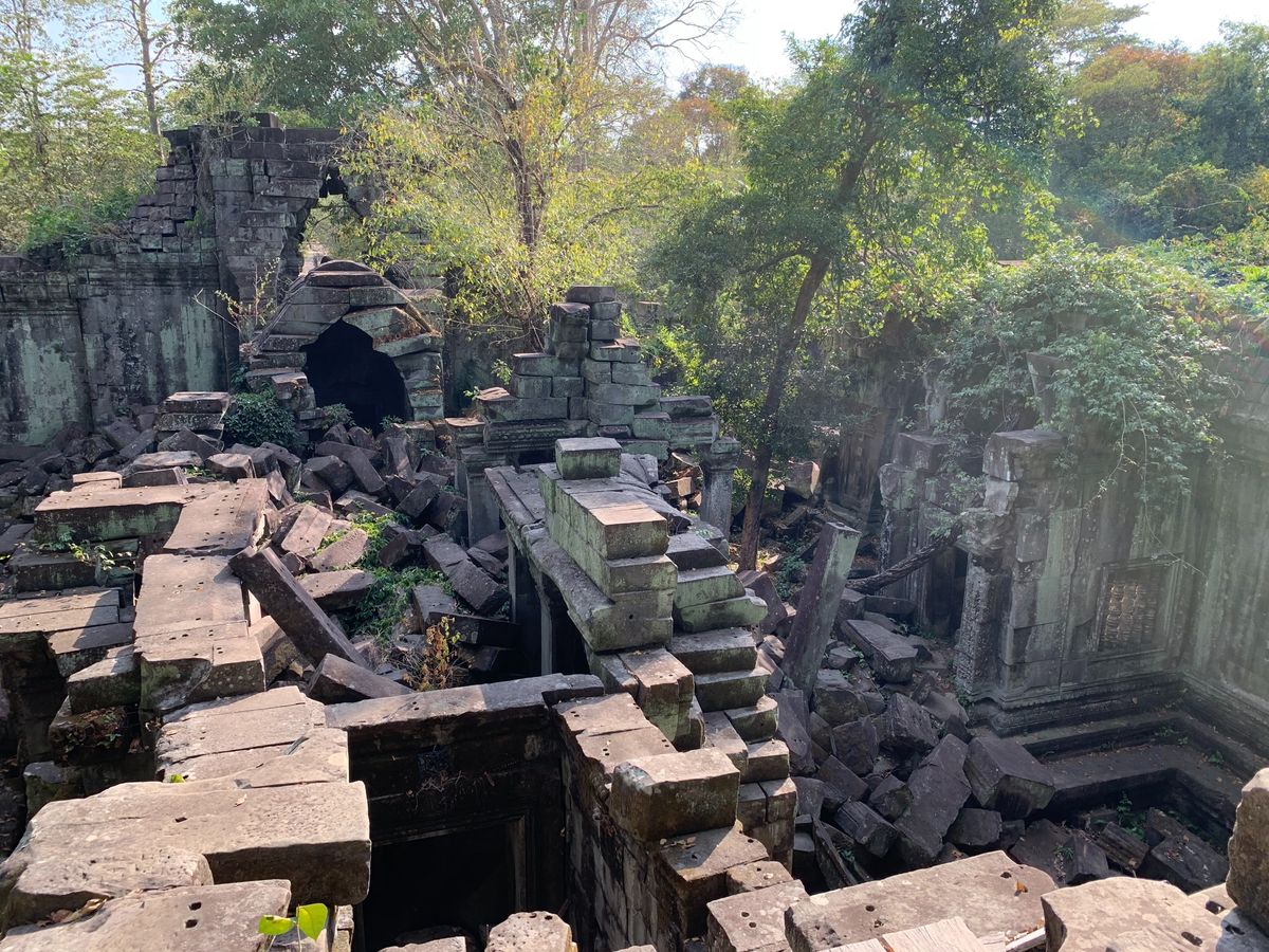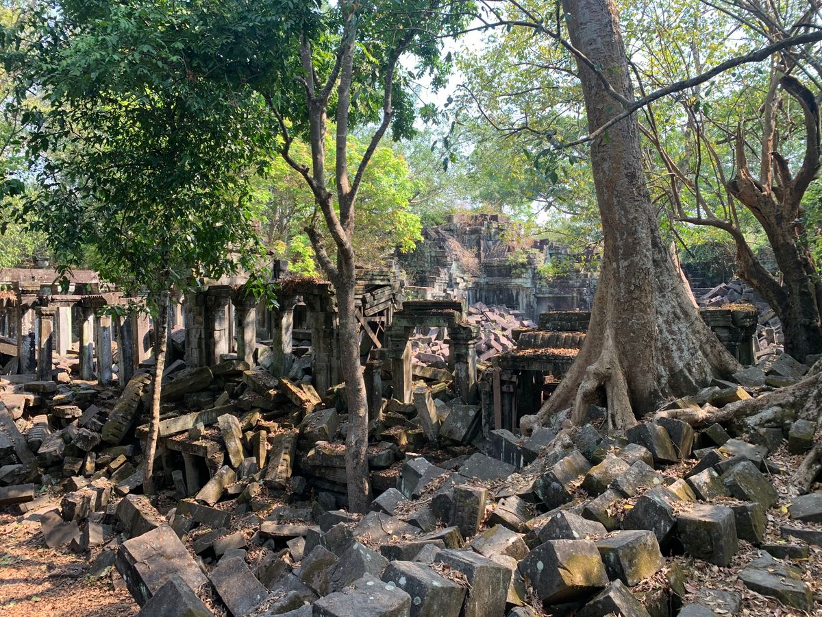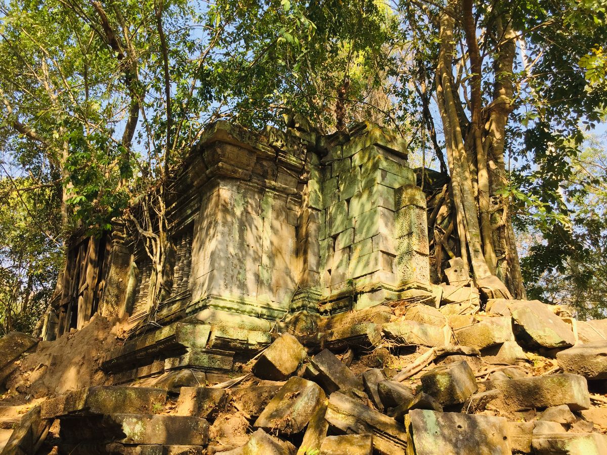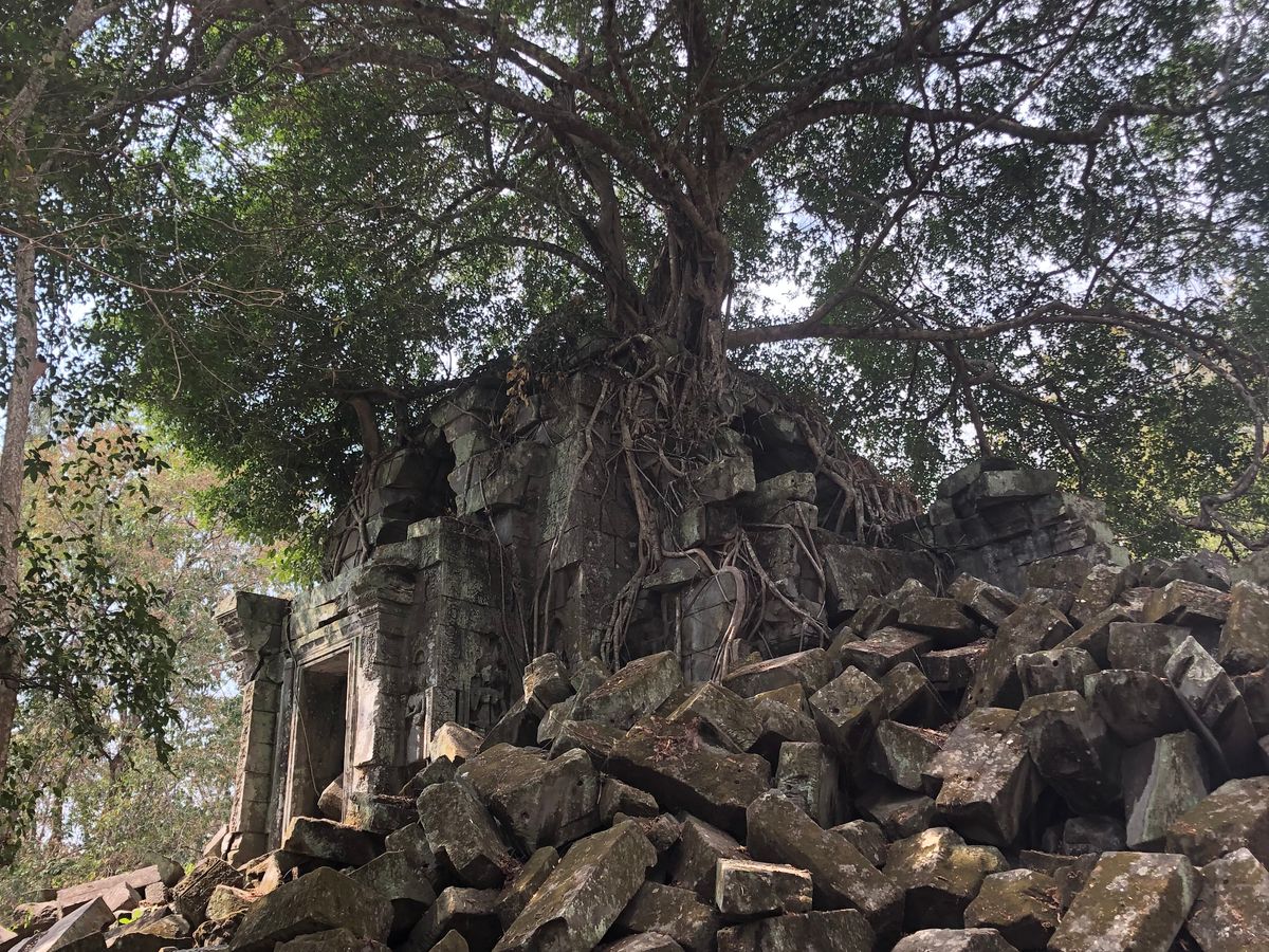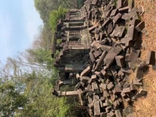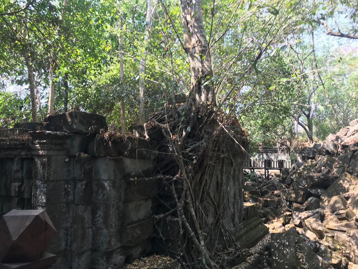 ベンメリアは森の中にある寺院で木を伐採されたり、遺跡の盗掘、自然破壊で今のような姿になっているとのことでした。森林の中にあり、影があるので思ったより涼しく、アンコールワットより快適に観光できました。乾季なので苔むした感じはありませんでしたが、遺跡が崩れているのが大変絵になる素晴らしい場所でした。アップダウンがあり、冒険してるような体験ができました。2年後には世界遺産に登録されるそうです。