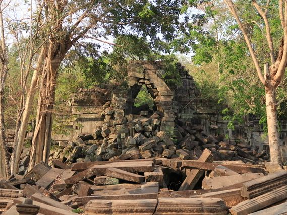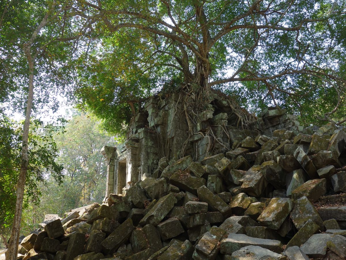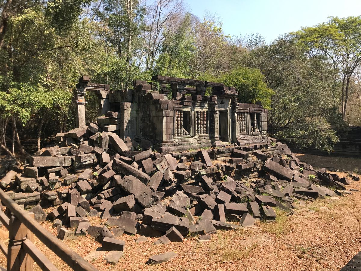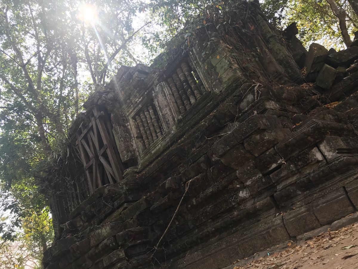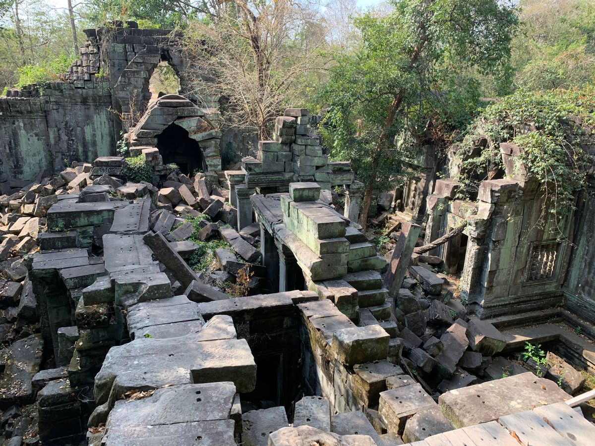 ベンメリアは森の中にある寺院で木を伐採されたり、遺跡の盗掘、自然破壊で今のような姿になっているとのことでした。森林の中にあり、影があるので思ったより涼しく、アンコールワットより快適に観光できました。乾季なので苔むした感じはありませんでしたが、遺跡が崩れているのが大変絵になる素晴らしい場所でした。アップダウンがあり、冒険してるような体験ができました。2年後には世界遺産に登録されるそうです。