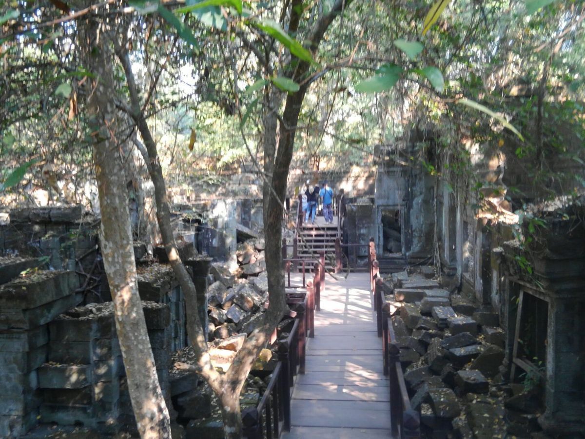 午後からのツアーに申し込みましたが見学者がすくなく、ゆっくり回れて大正解でした。ベンメリアは修復、復元が全くされていない遺跡なのでディープな遺跡好きには絶対におすすめです。足元に崩れ落ちている石に彫刻がしてあるのを発見したりしてインディージョーンズの世界に浸れます。アンコールワットを先に見て、予習をしてきた方がイメージがし易いので良いと思います。帰り道に大地に落ちる夕陽も見られ、他に参加者が無くて一人参加の割増料金でしたが大満足でした。