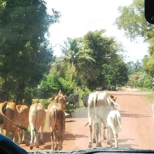 道中は、放し飼いの牛たちが車の前を歩いている等、のどかなカンボジアの田園風景を見ながらの移動でした。