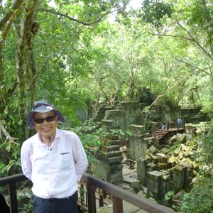 今回はベン・メリア 遺跡観光ツアーを利用しました。出発前に上智大石澤良昭教授の『東南アジア多文明世界の発見』などを読んでおきましたが、日本語を話すガイドが遺跡の前で具体的に浮き彫りの内容を説明してくれると印象深く理解出来た気がします。「乳海攪拌」の浮き彫りはベン・メリア の崩れ落ちた岩にもありました。またなぜ現在のように伽藍が崩れたかを蟻塚、ガジュマルの一種の巨大な榕樹、建築材料の砂岩に雨水が及ぼす影響など日本語ガイドが、私たちの時は参加者5名でしたが、質問しながら実物を使って説明してくれました。