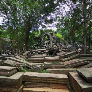 カンボジアへは何度も訪れていますが、シェムリアップへ来ると必ず行く遺跡です。修復されておらず、崩落した石に苔が生え(雨季)、なんとも言えない神秘的な遺跡です。市内から車で1時間程度かかります。色々な行き方がありますが、ツアーで行くとホテルまでの往復送迎などがあり安心です。時間にも正確で限られた日数の中で効率的に観光もできます。ちなみにベンメリア、実は世界遺産ではないです。ただその分、他の観光地よりも観光客が少ないので、ゆっくりのんびり楽しめます。