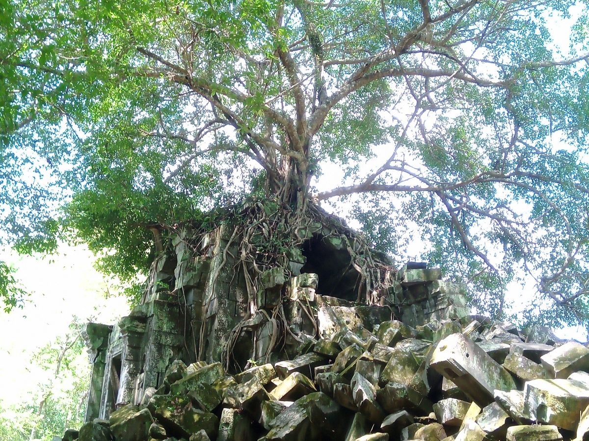 生い茂る緑と崩れかけた遺跡は、前日観光したアンコールワットなどとはまた違った魅力があります。